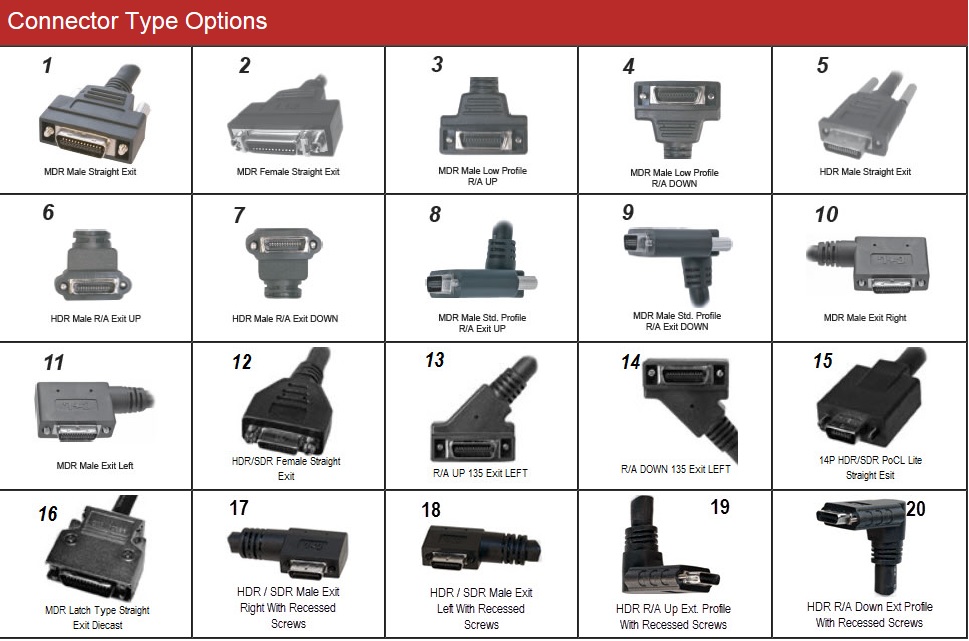 SAIS propose une très large gamme de câbles CL - CL ou miniCL - CL de très haute qualité pouvant être réalisés à la demande avec sorties en ligne, à angle droit gauche/droite /inférieure /supérieure. Les connecteurs CL ( MDR ) sont de types mâle ou femelle avec sortie droite, coudée à 90 degrés droite/gauche/inférieure/supérieure. Les connecteurs mini-CL ( HDR) sont mâles uniquement avec les mêmes variantes de sorties de câbles. PoCL fait également partie des options. de 1 à 10 mètres. | |