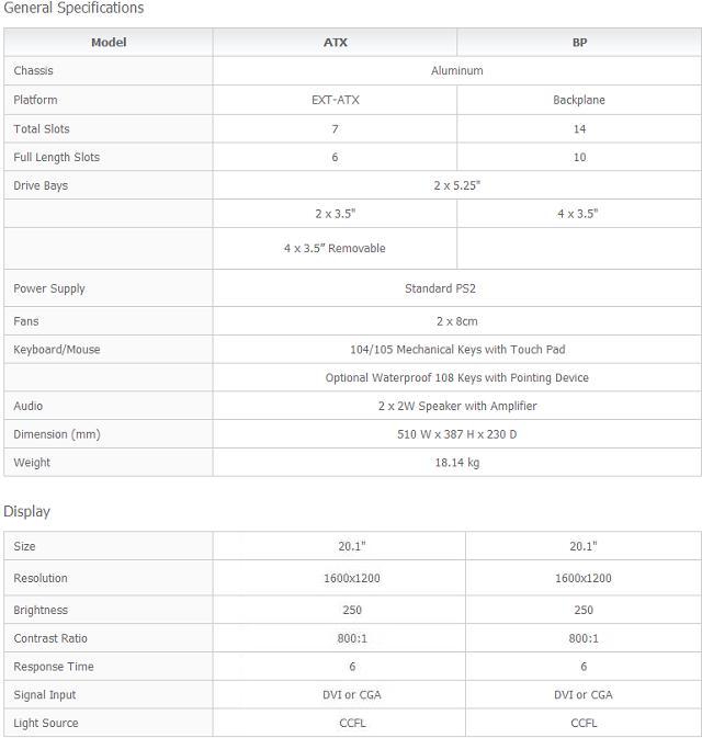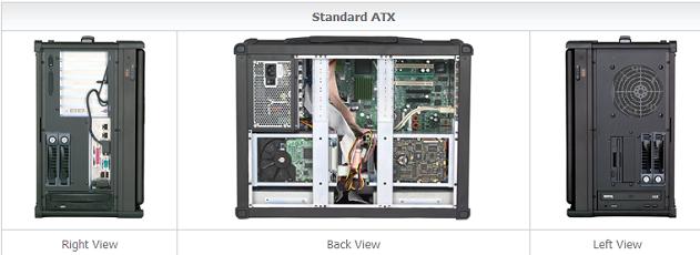 Entièrement en aluminium, le L9 est conçu pour résister à toutes les utilisations. Le L9 est disponible en configuration ATX. Le clavier (étanche en option) intègre un dispositif de pointage. Le L9 est conforme à la norme MIL-A-8625E Type II/III. Le disque dur interne est suspendu, une vitre de protection de 3 mm protège l'écran TFT 20.1 pouces, 1600 x 1200 des impacts. Jusqu'à 8 emplacements 5 1/4 et 3 1/2 sont disponibles pour accueillir vos disques et systèmes RAID. Le L9 dispose de 4 tiroirs 3 1/2 SATA amovibles et de deux emplacements 5 1/4 externes. | |